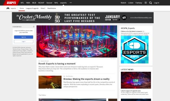 새로 신설된 e스포츠 섹션엔 대런 로벨(Darren Rovell)이 작성한 ‘e스포츠의 시간이 왔다(Esports is having a moment)’란 제목의 톱기사가 게재돼있다. 대런은 “미약한 수준이었던 e스포츠의 규모는 아시아에 이어 유럽, 미국에서도 빠르게 확산하며 급속도로 성장하고 있다”며, e스포츠의 발전상을 다각적으로 소개하고 있다.