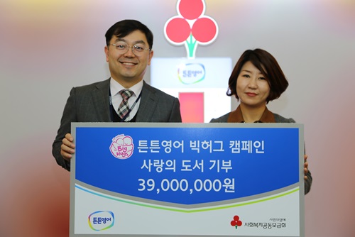 [쿠키뉴스=이다니엘 기자] 영어교육전문기업 튼튼영어가 ‘빅허그(Big Hug) 캠페인’을 통해 적립된 3,900만원 상당의 초등 교재를 20일 사회복지공동모금회에 전달했다.
