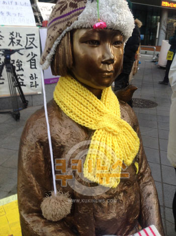"[쿠키뉴스=김현섭 기자] 주한일본대사관 앞 ‘평화의 소녀상’ 인근에서 한일 위안부 협상 폐기를 요구하는 노숙 집회를 벌인 혐의로 출석요구서를 받은 대학생들이 21일 경찰에 자진 출석했다.