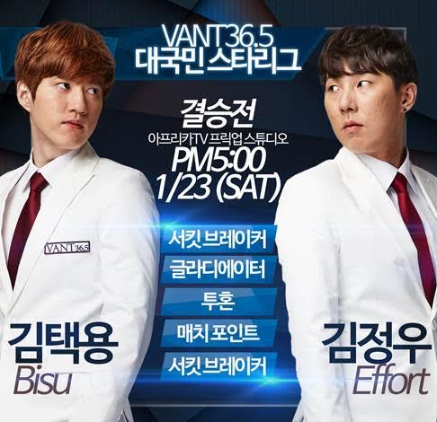 [쿠키뉴스=이다니엘 기자] 아프리카TV가 주최하고 콩두컴퍼니와 KJCOMMS가 주관하는 ‘VANT36.5 대국민 스타리그’가 23일(토) 대망의 결승전을 치른다. 이번 결승전에는 김택용과 김정우가 맞붙는다.