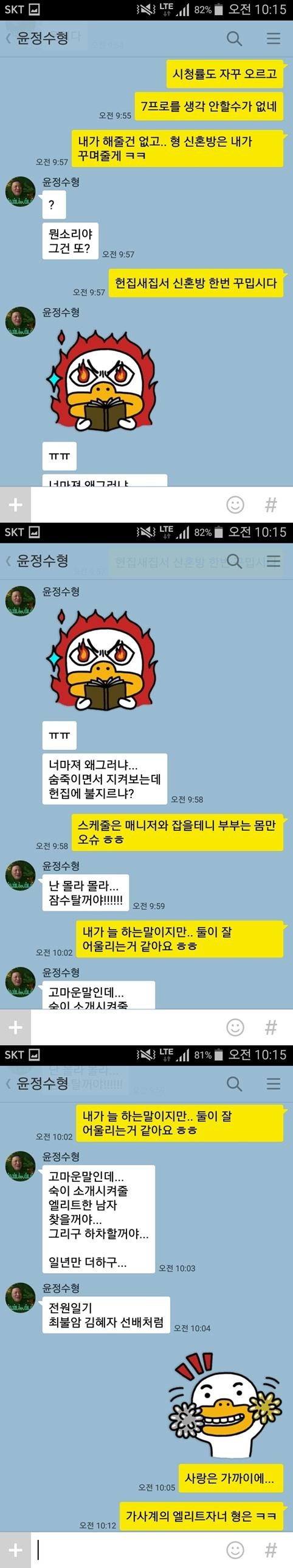 성치경 CP는 최근 “윤정수에게 ‘헌집새집’ 출연을 권했다”며 모바일 메신저 대화 내용을 공개했다.