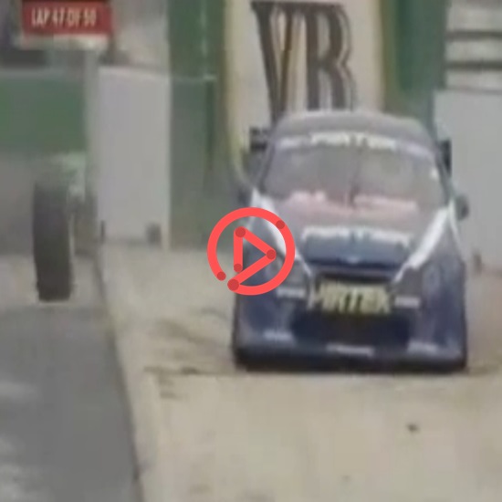 [쿠키뉴스=콘텐츠기획팀] 카레이스가 한창인 가운데 앞 타이어가 빠진 차량 한 대.