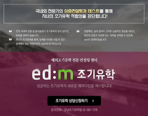 조기유학 기획전에 대한 상세사항은 edm유학센터 홈페이지(www.edmuhak.com)에서 확인할 수 있다. daniel@kukimedia.co.kr