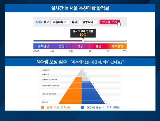 이번 업그레이드를 통해 스카이에듀는 인 서울(in 서울) 추천 대학 실시간 합격률, 실 경쟁자 성적분석, N수생 보정점수 서비스를 선보이며, 스카이에듀 입시연구소의 실시간 등급컷 등을 새롭게 도입한다.
