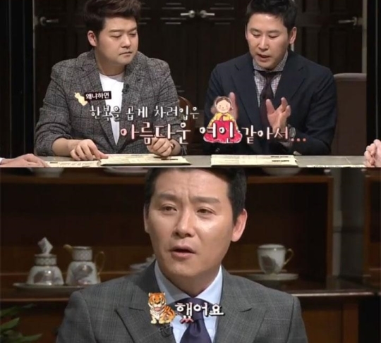 이에 신동엽과 전현무는 “차마 옷고름을 풀 수 없었다는 거예요?” “저질이야”라면서 짓궂은 농담을 던졌다.