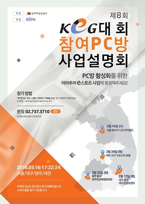 [쿠키뉴스=이다니엘 기자] 문화체육관광부(장관 김종덕)가 주최하고 한국e스포츠협회가 주관하는 ‘제8회 2016 대통령배 아마추어 e스포츠대회’에 참여할 PC방 모집을 위한 사업설명회가 오는 16일부터 열린다.