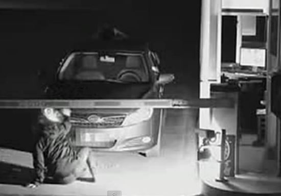 정산직원이 손짓으로 정지 신호를 보내자 차단기 앞에 정차한 차량.