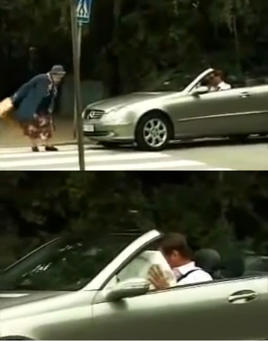 하지만 차량 운전자는 할머니의 느릿한 걸음이 못마땅한지 경적과 함께 엑설레이터를 밟아가며 위협을 가하는데...