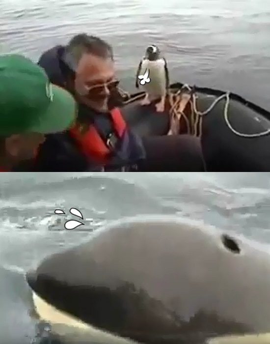 때마침 남극 주변을 관광하던 관광객의 카메라에 포착된 장면에는 범고래를 피해 이리저리 도망쳐 다니던 펭귄 한 녀석이 급기야 관광객 보트 위로 피신(?)하는 모습이 담겨있습니다. 정힘찬 콘텐츠에디터 [출처=유튜브 Kualu]