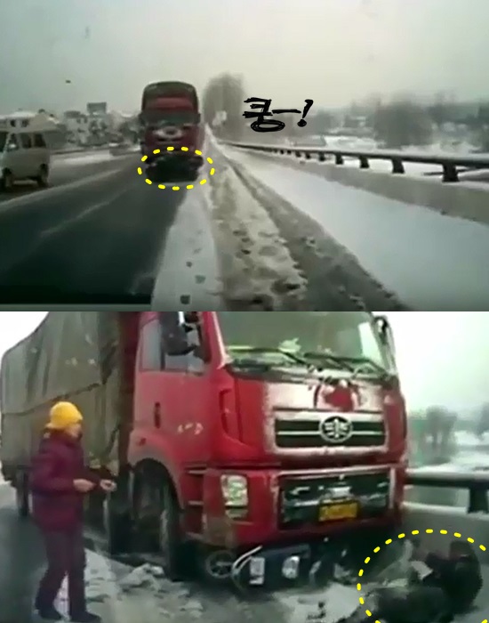 [쿠키영상] 트럭에 '쿵' 받혀 10미터 '질질'