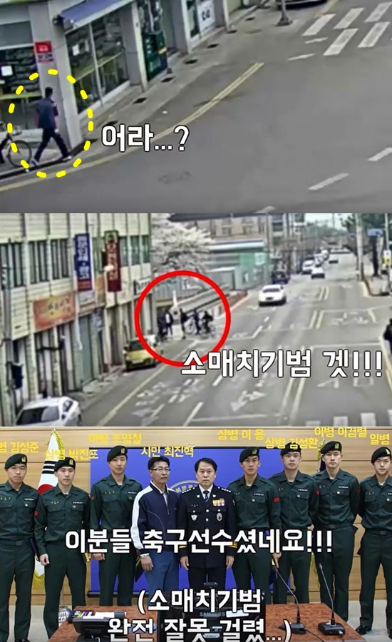 소매치기범이 제아무리 날고뛰어도 당연, 이 군인 선수들의 스피드에 당해낼 재간이 없었던 거죠.
