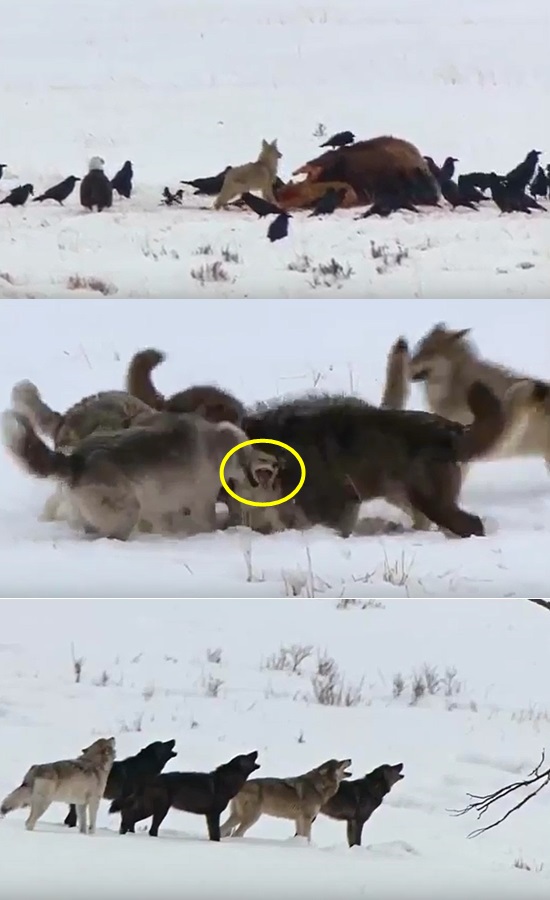 이때 이를 유심히 지켜보던 늑대 무리가 일제히 코요태 사냥에 나섭니다.