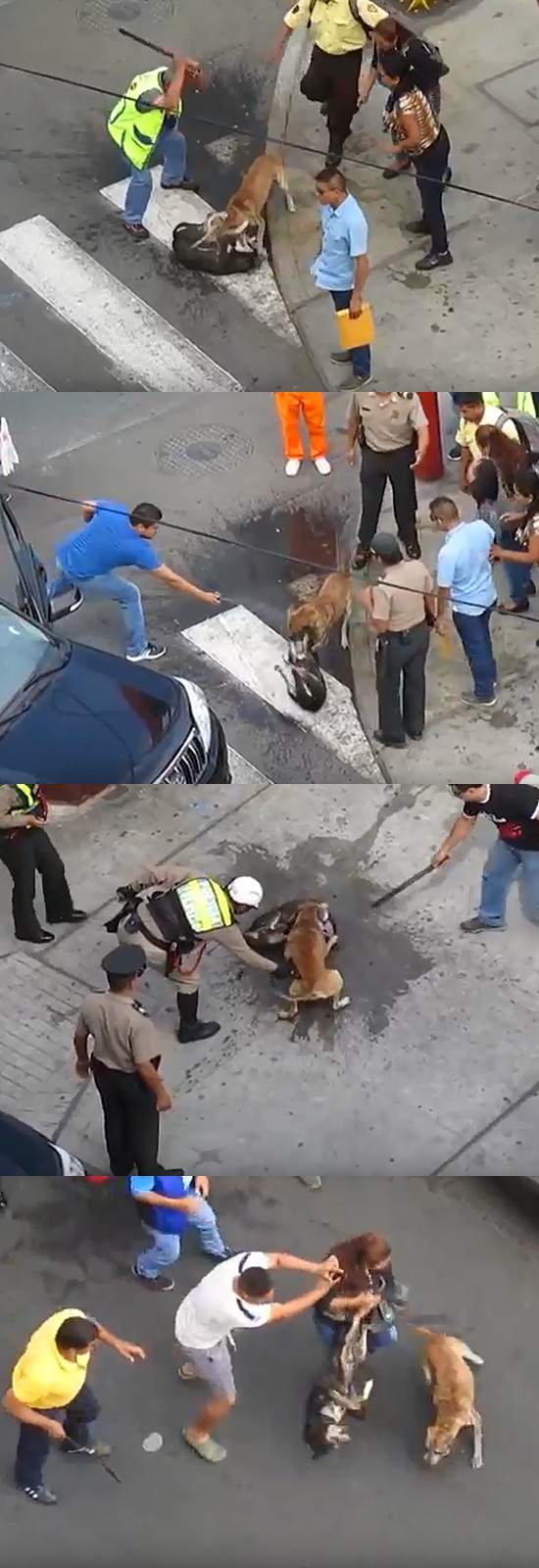 도심 한 가운데서 벌어진 두 마리 개의 혈투! 지나가는 행인들이 뜯어 말려보는데요.