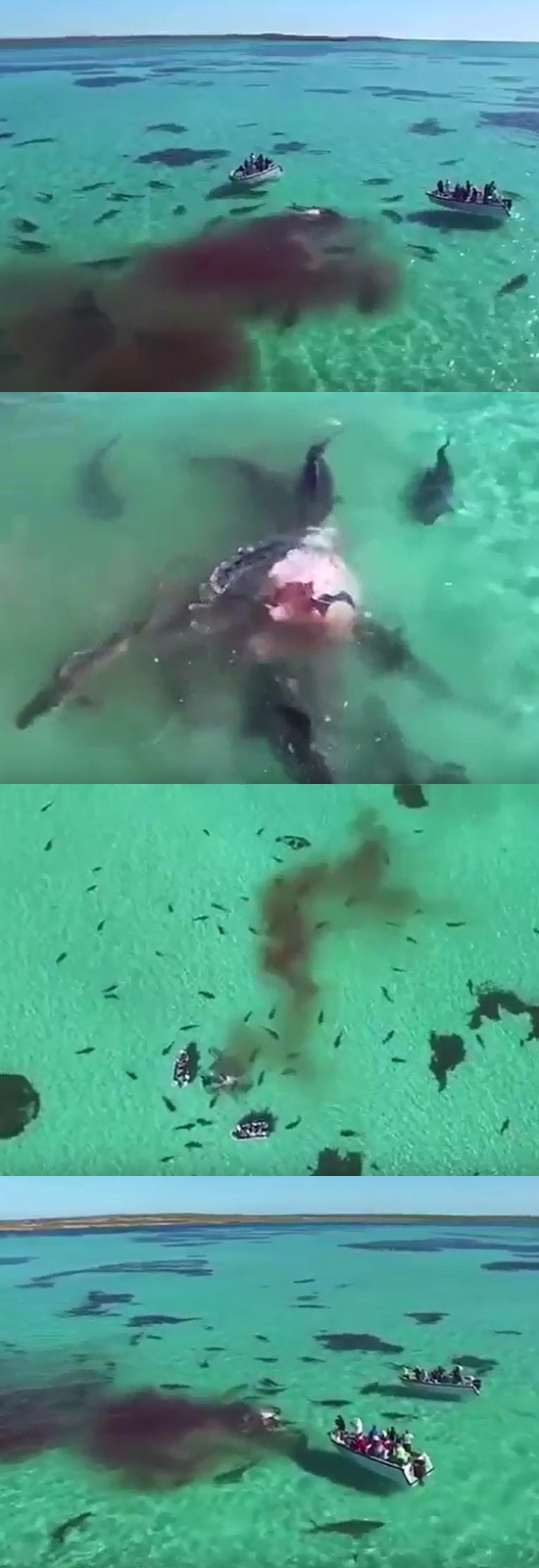 [쿠키영상] ‘피비린내가 진동’ 고래 사체로 몰려든 타이거 상어 떼