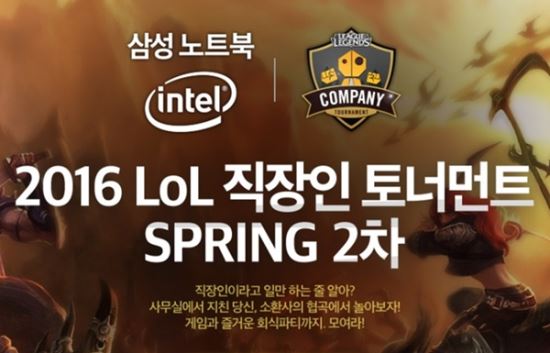 [쿠키뉴스=이다니엘 기자] 직장인들을 위한 리그 오브 레전드(LoL) 대회인 '삼성 노트북-인텔 인사이드? 2016 LoL 직장인 토너먼트' 스프링 2차 대회 4강 및 결승전, 타이틀 매치가 29일 오후 5시 대치동 프릭업 스튜디오에서 진행된다.