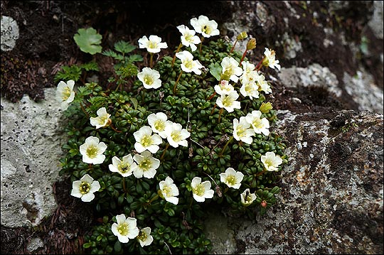 돌매화는 꽃을 제외하면 키가 3㎝ 정도밖에 되지 않는 아주 작은 소형의 목본류다. 한라산은 분포지역 중 최남단에 해당하며 유일하게 백록담 일대 암벽에 극소수의 개체가 살아가고 있다.