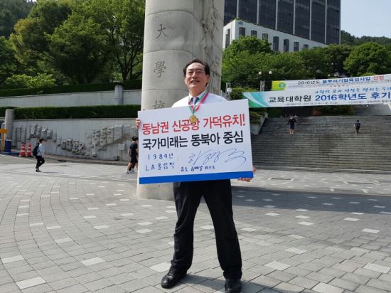 7일 오후 3시 동아대 승학캠퍼스에서 1인 시위중인 하 교수는 “가덕도 신공항은 부산 뿐 아니라 대한민국 국익과 미래를 위해서 반드시 밀양이 아닌 가덕도가 되어야 한다”며 “이번 가덕도 신공항 유치는 조국의 100년 대계에 버금가는 중요한 사업으로 84년 올림픽에 불 태웠던 애국심으로 1인 시위에 나섰다”고 말했다.