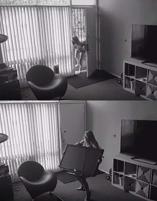 미국 캘리포니아주의 한 주택가에 비키니 차림의 젊은 여성 도둑이 침입, 가재도구를 싹쓸이하는 영상이 눈길을 끕니다.