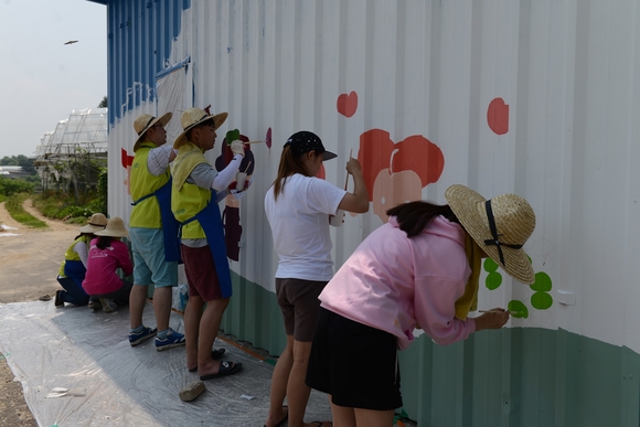 이날 행사는 농협손해보험 임직원이 지난 5월 도달미 마을의 명예이장과 명예주민으로 위촉된 이후 처음 실시한 봉사활동으로, 헤아림 봉사단 20여명과 담이랑 봉사단 20여명이 마을 담벼락 등 약 30m구간에 벽화를 그렸다.