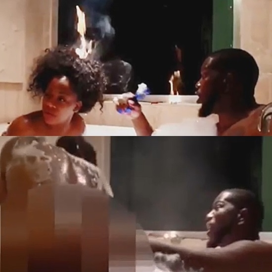 욕조 안, 거품 목욕으로 로맨틱 분위기를 즐기던 부부.
