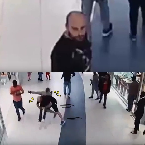 남아공 가우텡주 요하네스버그의 한 쇼핑몰, 다수의 쇼핑객들 사이로 도망쳐오는 강도를 발견한 남성.