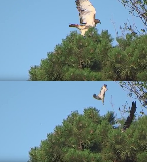 굶주린 매의 어눌한(?) 사냥에 날렵함을 보인 다람쥐가 탈출에 성공, 한수 위임을 증명했습니다.