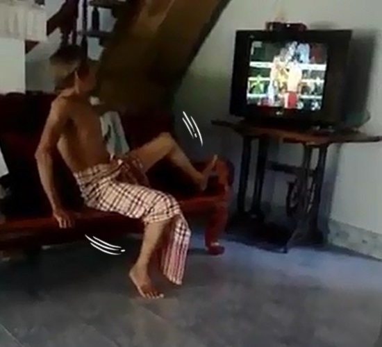 TV를 통해 격투기를 시청 중이던 노인이 경기가 꽤 흥미진진한지 상의를 벗고는 화면 속으로 빠져드네요.