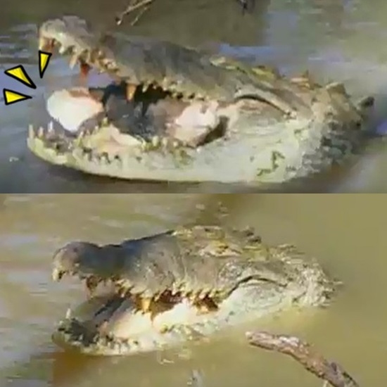 돼지 머리를 아작내 삼키는 악어의 모습이 섬뜩합니다.