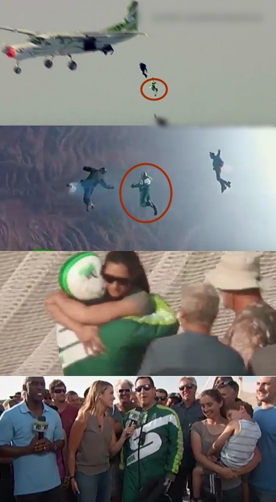 캘리포니아주 시미밸리 상공에서 펼쳐진 이번 아찔한 이벤트에 폭스방송사는 2분여간의 자유 낙하를 생중계하기도 했는데요.