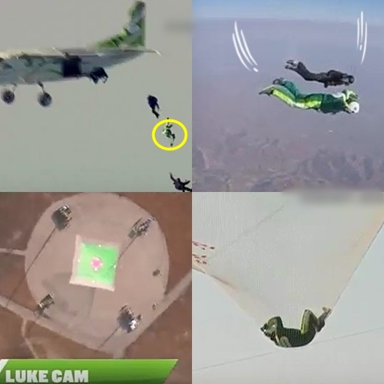 지난 30일, 미국의 유명 스카이다이버 루크 에이킨스가 25,000피트(7,620미터) 상공에서 낙하산과 스윙수트 없이 맨몸으로 자유 낙하해 지상에 설치된 그물에 안착하는데 성공, 큰 화제가 되고 있습니다.