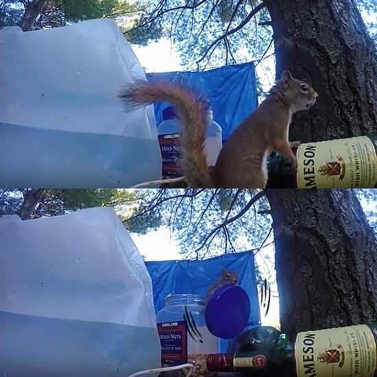 캐나다 온타리오주에서 친구와 함께 캠핑을 즐기던 남성이 테이블 위 혼합 견과류를 넘보던 다람쥐를 발견하고는 이내 뚜껑을 닫아버리고 다람쥐의 행동을 주시했는데요.