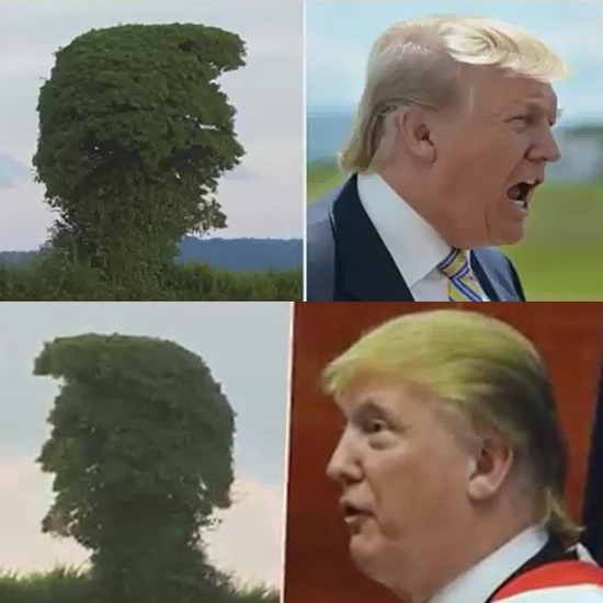 특히 연설하는 트럼프를 연상하듯 입이 벌어져있는 것 같은 나무 형상이 꼭 닮았으며, 게다가 독특한 앞머리 스타일은 영락없는 트럼프인데요.