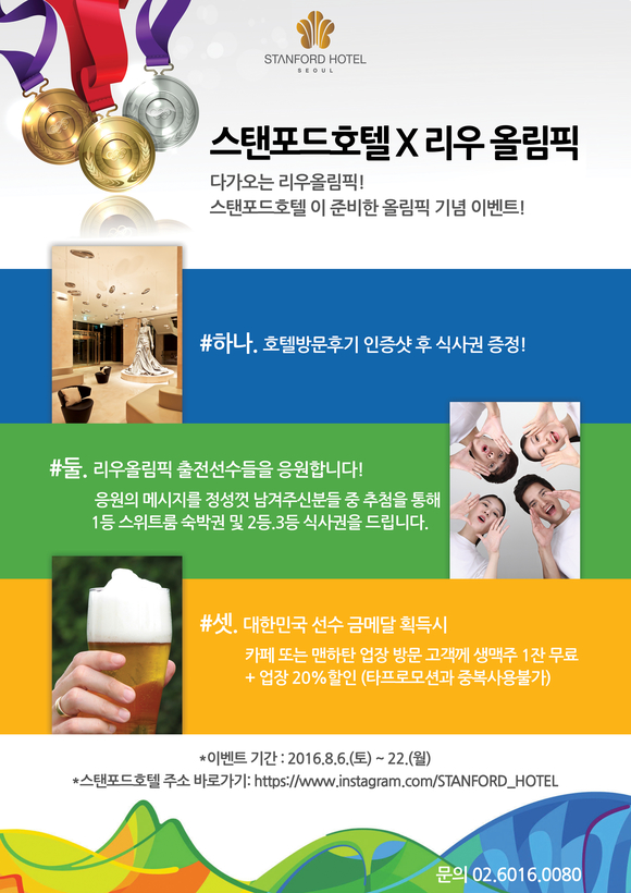 상암동 스탠포드호텔이 공식 인스타그램에서 리우올림픽 성공을 기원하는 올림픽 기념 이벤트를 진행한다고 2일 밝혔다.