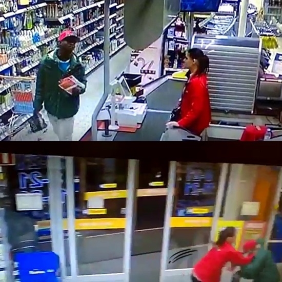 훔친 물건을 들고서는 보무도 당당하게 걸어 나오는 좀도둑, 마치 여성 점원에게 ‘나 건들지 마 다쳐!’라고 태연하게 위협하듯 상점을 나서려는 찰나인데요.