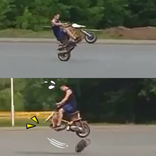 여러 차례 앞바퀴를 들고 오로지 뒷바퀴에만 의지한 채 가다 서다를 반복하며 중심을 잡는 실력이 참 대단한데요.