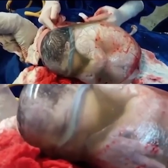 바로 손상이 가지 않은 온전한 상태의 양막 안에서 고스란히 태어난 아기의 영상인데요.