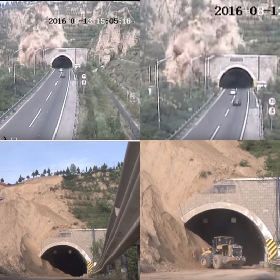 지난 토요일 오후 중국 산시성의 한 고속도로 터널 입구 장면인데요.