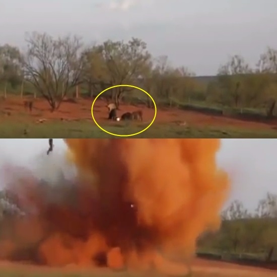 폭약이 설치된 장소 주변에 먹이를 뿌려 야생 멧돼지를 유인한 뒤 적당한 시기에 터뜨리는 방식으로 엄청난 폭발음과 함께 공중으로 날아 흩어지는 야생 멧돼지의 모습이 입을 다물지 못할 정도로 끔찍합니다.