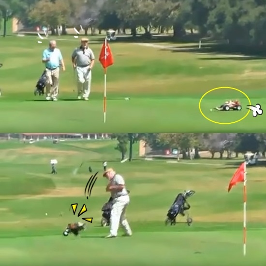 생뚱맞은 R/C카 출현에 황당함을 느낀 노인들, 이내 화가 치밀자 급기야 골프채로 R/C카를 내리치는데요.