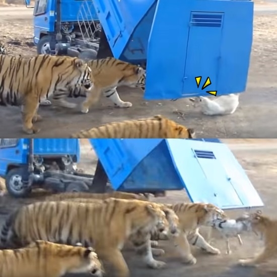 때마침 먹잇감을 실은 차량이 나타나자 몰려드는 호랑이떼.