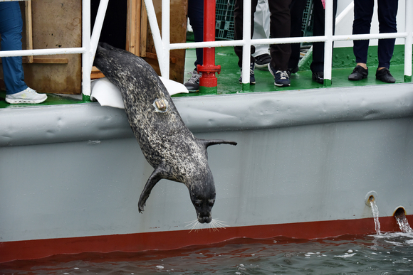 [쿠키뉴스=김진환 기자] 롯데월드 아쿠아리움이 25일 해양수산부 산하 국립수산과학원 고래연구센터와 함께 백령도 인근에서 점박이 물범 ‘복돌이’를 야생 방류하는데 성공했다고 26일 밝혔다.