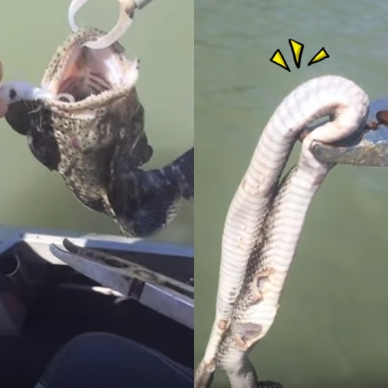 남성이 곧장 꺼내 보인 뱀은 이미 죽은 채로 늘어져 있는 모습, 가리지 않고 닥치는 대로 먹어치우는 물고기의 강한 잡식성을 엿볼 수 있네요. 정힘찬 콘텐츠에디터 [출처=유튜브 Caters Clips]