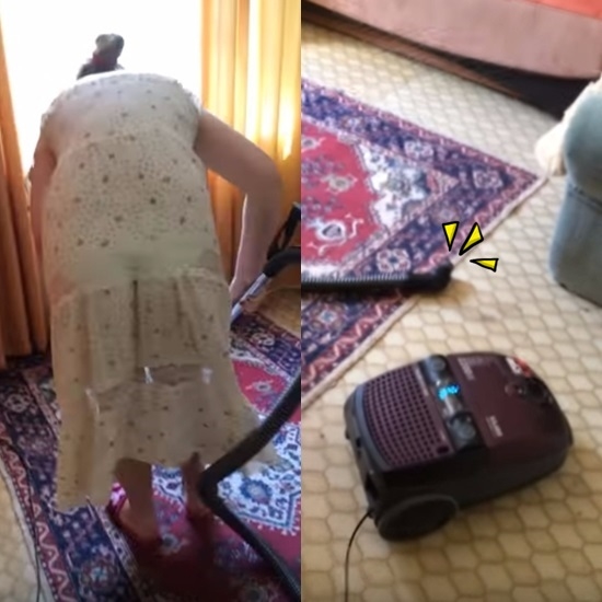 헌데 청소기 본체와 분리된 호스만으로 먼지를 빨아들이고 있는 만삭인 아내, 그 뒷모습에서 애틋함이 더합니다. 정힘찬 콘텐츠에디터 [출처=유튜브 ViralHog]