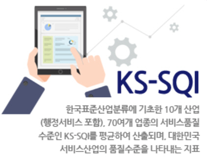 ▲KS-SQI 모델 이란: KS-SQI(Korean Standard-Service Quality Index, 한국서비스품질지수)는 2000년 한국표준협회와 서울대학교 경영연구소가 공동으로 개발한 서비스품질평가 모델이다. 국내 서비스기업의 제품 또는 서비스를 이용해 본 고객을 대상으로 서비스품질에 대한 만족 정도를 나타내는 종합 지표로 활용된다. 고객만족의 선행변수로서 보다 객관적이고 장기적인 개념인 서비스품질을 측정하는 모델로, 성과영역의 2가지 차원, 과정영역의 5가지 차원 등 총 7가지 차원으로 구성된다.