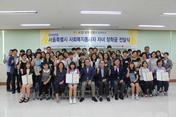 장학금 수혜대상은 대학생 20명, 고등학생 16명이다. KB생명보험은 어려운 환경 속에서도 묵묵히 일하고 있는 사회복지기관 종사자들을 돕기 위해 2013년부터 4년 연속 장학금 지원사업을 벌이고 있다.