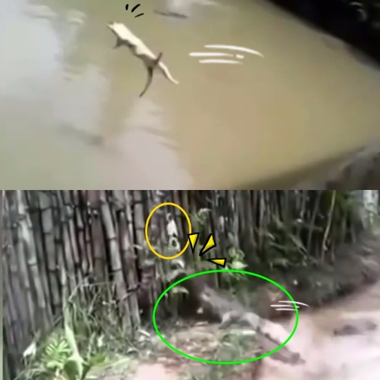놀랍게도 날쌘 점프 실력을 선보이며 고양이를 낚아챈 악어, 하지만 녀석들 서로 먹잇감을 차지하겠다고 다투는 통에 가까스로 빠져나오는데 성공한 고양이.