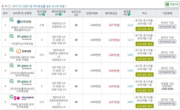또한 온라인 저축보험의 경우 언제 해지하더라고 원금을 100% 보장해주는 상품도 있다. 만기 전에 해지환급금이 저축액보다 적어 소비자가 피해를 보는 경우가 없어 은행 상품보다 유리한 측면이 많다.
