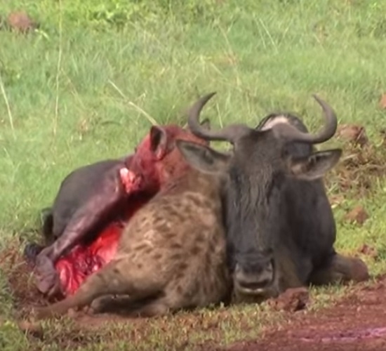 누의 시뻘건 배 속은 이미 하이에나에게 비워줄 정도로 만신창이가 되어버린 지 오래, 온 몸이 마비가 돼서인지 아픔의 흔적이 보이질 않지만, 이내 차츰차츰 발버둥을 치면서부터 고통 속에 운명을 다합니다. 정힘찬 콘텐츠에디터 [출처=유튜브 ngagoo]
