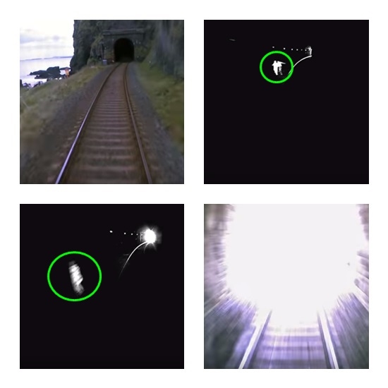 하지만 잠시 뒤, 터널을 빠져나오기 직전의 선로 위에 사람 형체로 보이는 게 눈에 띕니다.
