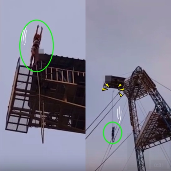 [쿠키뉴스=콘텐츠기획팀] 지난 14일 오후에 발생한 춘천시 강촌의 번지점프 사고 장면입니다.